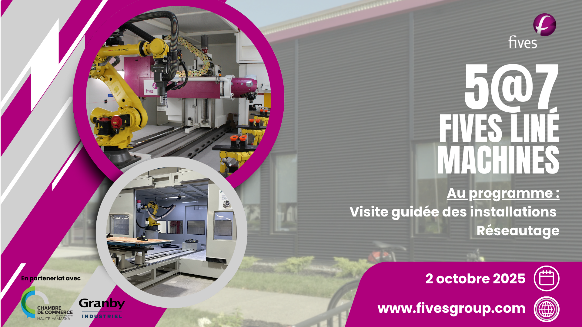 La Chambre de commerce et de l’industrie Haute-Yamaska et Granby Industriel vous invitent à une immersion au cœur de l’innovation industrielle locale, lors d’un 5 à 7 chez Fives Liné Machines, un fleuron granbyen reconnu pour sa technologie de pointe et son expertise en ingénierie industrielle. Qui est Fives Liné Machines ? Établie à Granby […]